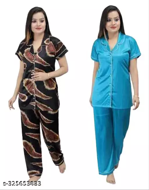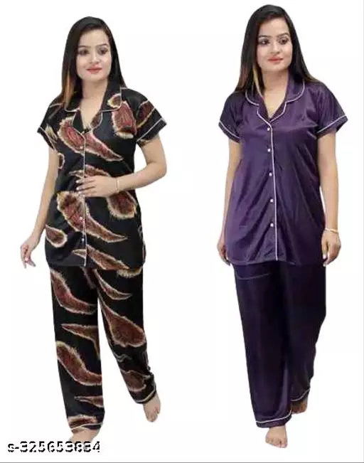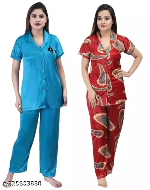 Soft And Stylish Nightwear For Women Two Piece Nightwear Set : Pyjama, Top (Pyjama Sets For Women) |Purpose: Night Dress For Women, Sleep - Loungewear - Home Wear For Women Great As A Gift - Treat Yourself A satin Leisure Wear That Looks Great & Feel Amazing. This satin Night Wear Is The Perfect Present For Every Lady In Your House Be It Your Mom , Wife , Sister Or Even A Friend