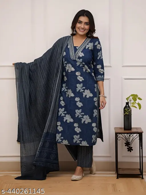 Name : Pure Cotton Kurta With Bottom & Dupatta Set