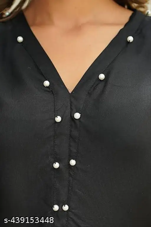 Name : Women Black Solid Top V Neck Three Quarter Sleeves Black Embellished Embroidered Palazzo Cord Set