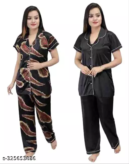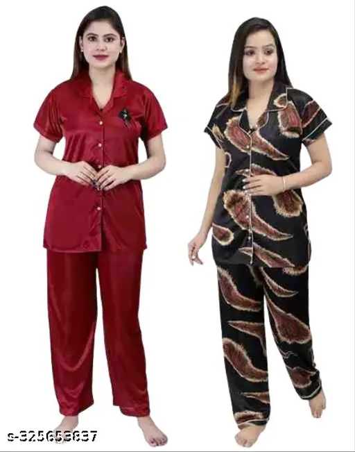 Soft And Stylish Nightwear For Women Two Piece Nightwear Set : Pyjama, Top (Pyjama Sets For Women) |Purpose: Night Dress For Women, Sleep - Loungewear - Home Wear For Women Great As A Gift - Treat Yourself A satin Leisure Wear That Looks Great & Feel Amazing. This satin Night Wear Is The Perfect Present For Every Lady In Your House Be It Your Mom , Wife , Sister Or Even A Friend